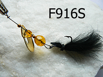 No problem seeing these bushy dressed trebles dance behind the spinners reflection and turbulence during retrieve - a very enticing bait.